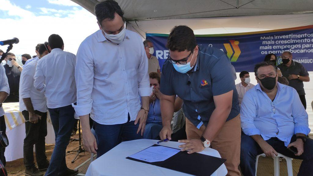 Em solenidade prestigiada por secretários do governo estadual, políticos e prefeitos, o governador Paulo Câmara assinou no final da manhã desta sexta-feira (13), a ordem de serviço para que a Construtora Venâncio (vencedora da licitação), começasse a operar as máquinas que vão construir a rodovia PE-499, ligando o trecho da BR-428, que passa pelo município de Cabrobó até a zona urbana da cidade de Terra Nova, seguindo até a BR-316. O evento aconteceu na entrada da PE-499, as margens da BR 428, zona rural de Cabrobó.