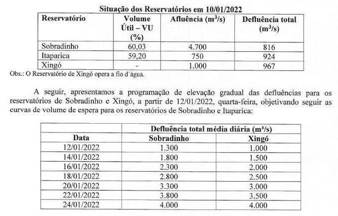 A nota, assinada pelo presidente do CBHSF, Maciel Oliveira, reúne dados do Operador Nacional do Sistema Elétrico (ONS) e da Companhia Hidrelétrica do São Francisco (CHESF) que apontam para a elevação gradual das vazões defluentes dos barramentos de Sobradinho e Xingó até 4.000 m³/s.