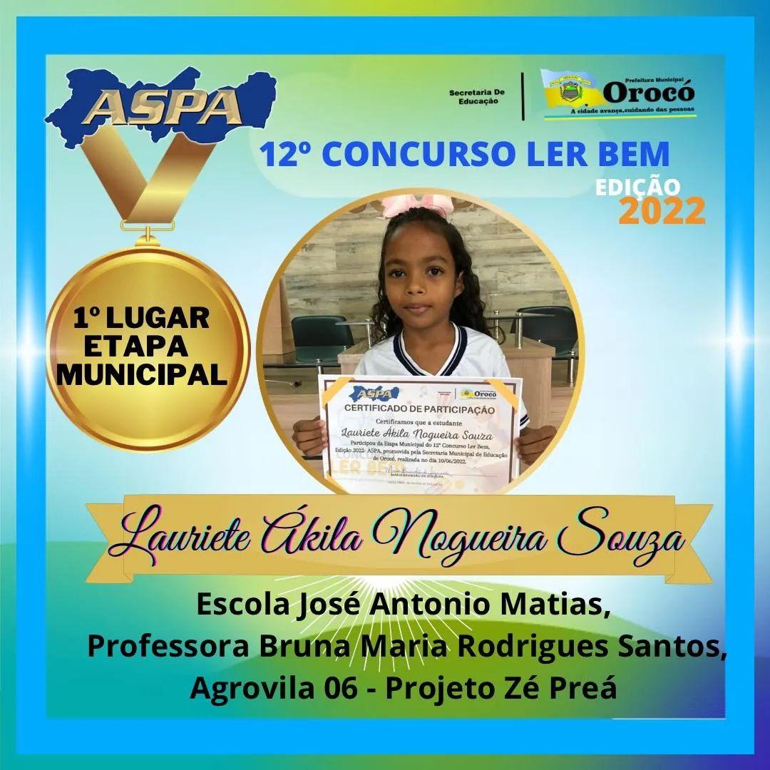 Na manhã da sexta-feira (10), a Prefeitura de Orocó, no Sertão de PE, por meio da Secretaria de Educação, em parceria com a ASPA ( Associação Pernambucana de Atacadista e Distribuidores), promoveu a Etapa Municipal do 12° do Concurso "Ler Bem" 2022. Participaram do evento, 08 estudantes do município, selecionadas da etapa escolar da rede municipal de ensino.