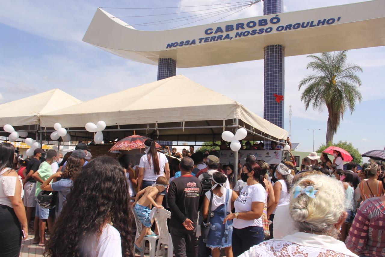 No sexto dia de caminhada rumo a Recife, os pais da menina Beatriz Angélica foram recebidos no início da tarde desta sexta-feira (10), em Cabrobó, no Sertão de PE. Emoção e humanidade, esses foram os sentimentos dos cabroboenses, que seguiram com cartazes, faixas, carro de som e gritos de justiça numa passeata de mais de 1 km pela BR 428, até o portal da cidade.