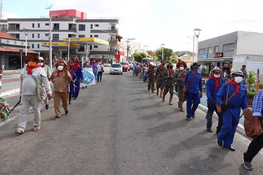 O cortejo percorreu a avenida em direção à Praça Monsenhor Arruda Câmara. Em frente à catedral do Senhor Bom Jesus dos Remédios, eles participaram da celebração eucarística ministrada pelo Padre Gilvan Bezerra.