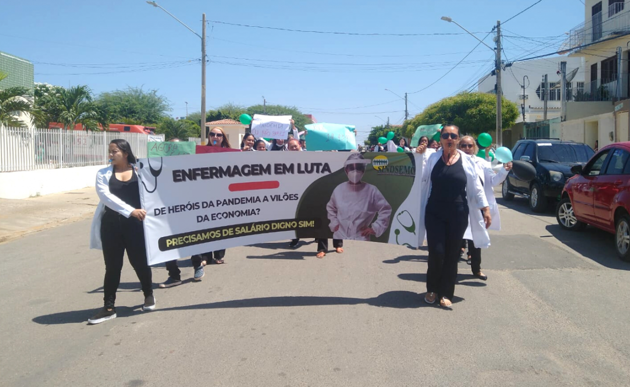 Em Cabrobó, no Sertão de PE, com o apoio do SINDISEMC, Sindicato dos Servidores Municipais de Cabrobó, os profissionais da Enfermagem iniciaram o protesto por volta das 8h; com a concentração na praça da Secretaria de Saúde, ao lado do Hospital Municipal. Em seguida, percorreram as principais ruas da cidade ao som de apitos com faixas e cartazes.