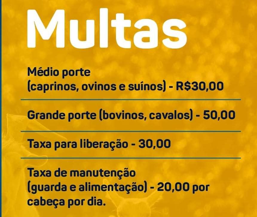 Haverá multas e taxas para o proprietário ou responsável pelo animal, independente da espécie, que será liberado em um prazo de 7 (sete) dias. Se o animal não for resgatado neste prazo, será doado ou irá a leilão.