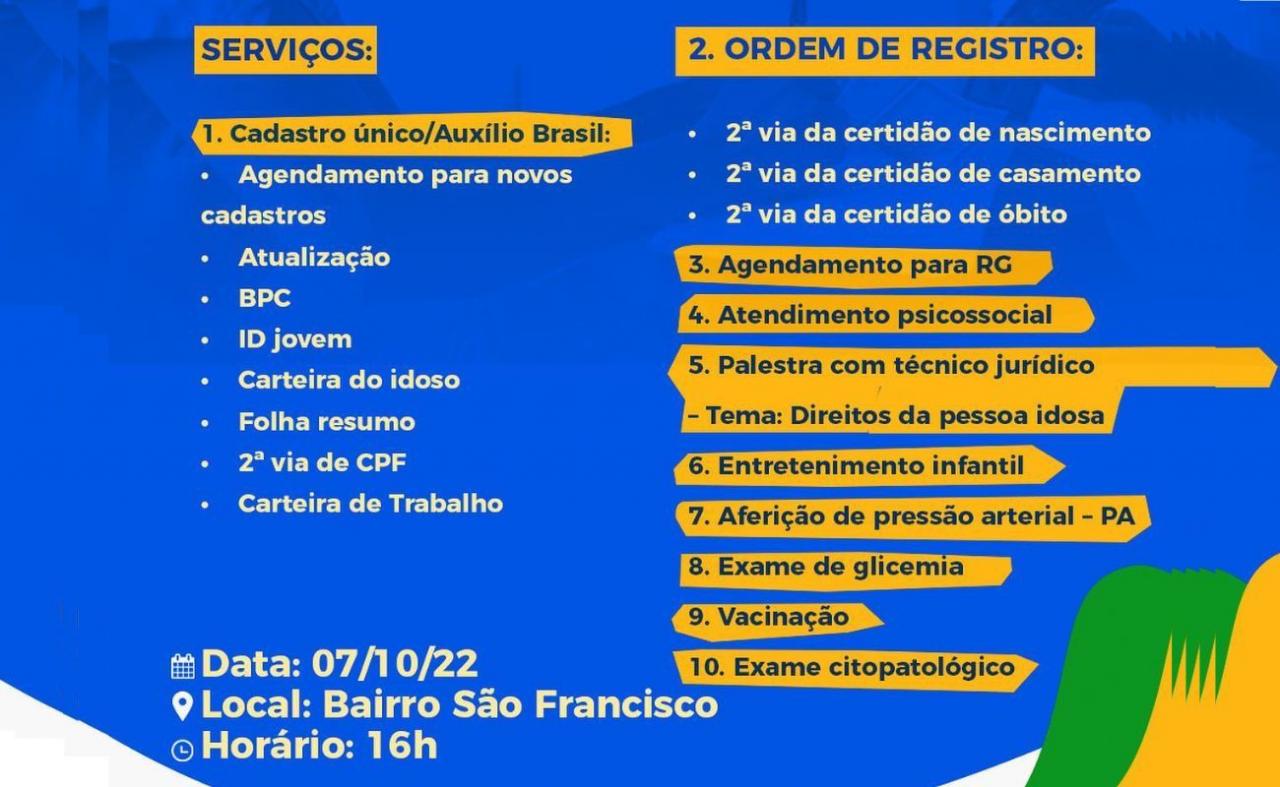 Pensando em melhorar cada vez mais a vida dos parnamirinenses, a Prefeitura de Parnamirim, no Sertão de PE, por meio da Secretaria de Desenvolvimento Social realizará na próxima sexta-feira (7), um Mutirão Socioassistencial com diversos serviços e atendimentos à população. O evento acontece a partir das 16h no bairro São Francisco.