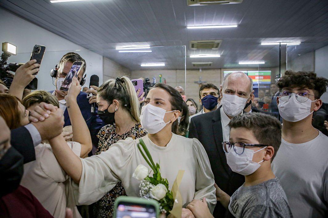 A ex-prefeita de Caruaru, Raquel Lyra (PSDB) entregou nesta quinta-feira (31), carta de renúncia na Câmara dos Vereadores do município para seguir na disputa ao Governo de Pernambuco nessas eleições. Agora, a pré-candidata ao Palácio do Campo das Princesas irá se dedicar exclusivamente à pré-campanha. A solenidade que marcou a transição do cargo para o atual prefeito Rodrigo Pinheiro, contou com as presenças de parlamentares locais e da população.